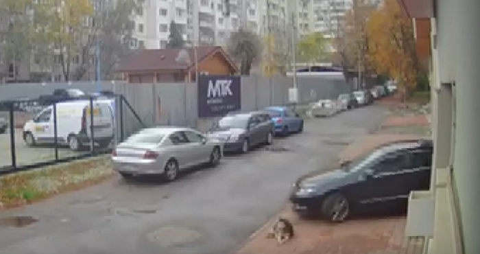 На кадрите се вижда как автомобил, излизащ от паркинг, прегазва куче, лежащо на тротоара. Колата спира за момент, шофьорът излиза и вижда, че е затиснал животното с една от гумите. Въпреки това той се качва обратно в автомобила и потегля, оставяйки животното в безпомощно състояние, посочва Нова телевизия.