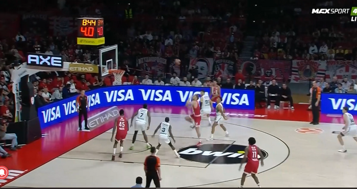 След 10 минути игра в "Двореца на Мира и Приятелството" в Пирея домакините поведоха с 28-14, а на почивката се оттеглиха с аванс от 14 точки (50-36). В заключителната част гръцкият гранд влиза с преднина от 21 точки (74-53), а до края срещата просто се доиграваше.