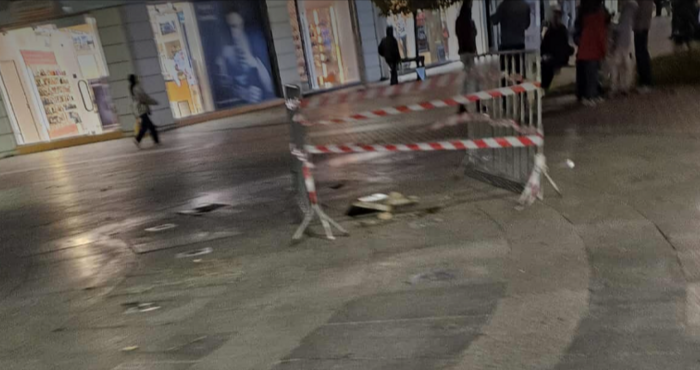 В момента дупката на фонтана е оградена с ленти.