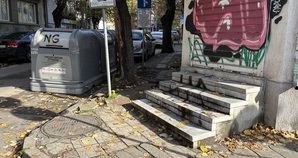 По думите му на описаното място е изградено и монолитно стълбище, което заема част от тротоара и представлява допълнително препятствие за пешеходците, включително за хора с увреждания, родители с детски колички и възрастни. "По информация на живущи и по видимото положение на място, стълбището повдига съмнения за незаконно строителство, извършено без съответните строителни книжа и разрешение, в противоречие с разпоредбите на Закона за устройство на територията (ЗУТ), в частност относно дефиницията за незаконен строеж по чл. 225, ал. 2 ЗУТ.", пише още читателят.