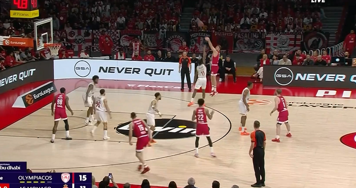 Иначе след 10 минути игра в "Двореца на Мира и Приятелството" в Пирея, домакините поведоха с 28-23, а на почивката се оттеглиха при резултат 51-39 в тяхна полза. В заключителната четвърт двата отбора влязоха при резултат 72-53 в полза на "червено-белите", а до края срещата просто се доиграваше.