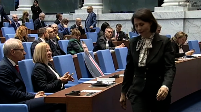 Народната представителка Елисавета Белобрадова постави макет със снимка на Пеевски на обичайното му място в пленарната зала. Изрязаният му портрет в естествен размер остана там известно време, преди да бъде изнесен.