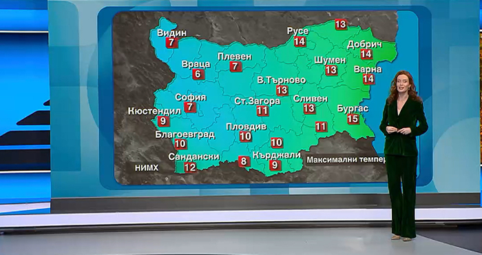 Максималните в повечето райони ще достигат между 10 и 15 градуса. По-хладно ще остане в местата с мъгли и ниска облачност, където показанията на термометрите ще бъдат под 10°.