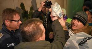 Част от тях се опитаха да избутат полицаите и отправяха обиди, предава БТА.