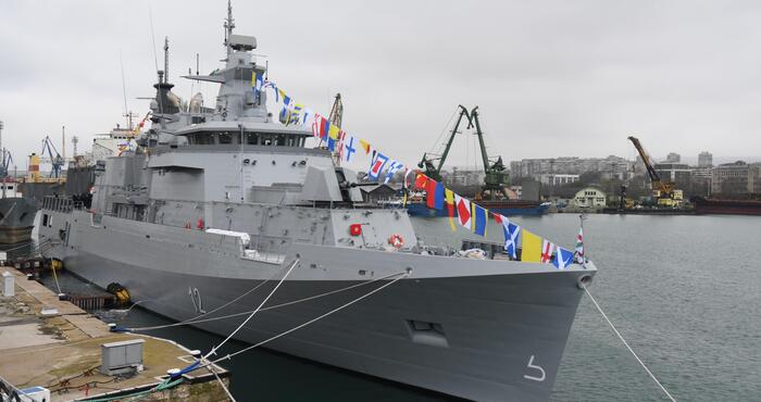 Министър Атанас Запряно присъства на военен ритуал по тържественото вдигане на военноморския флаг на Република България на новопридобития многофункционален модулен патрулен кораб "Храбри".