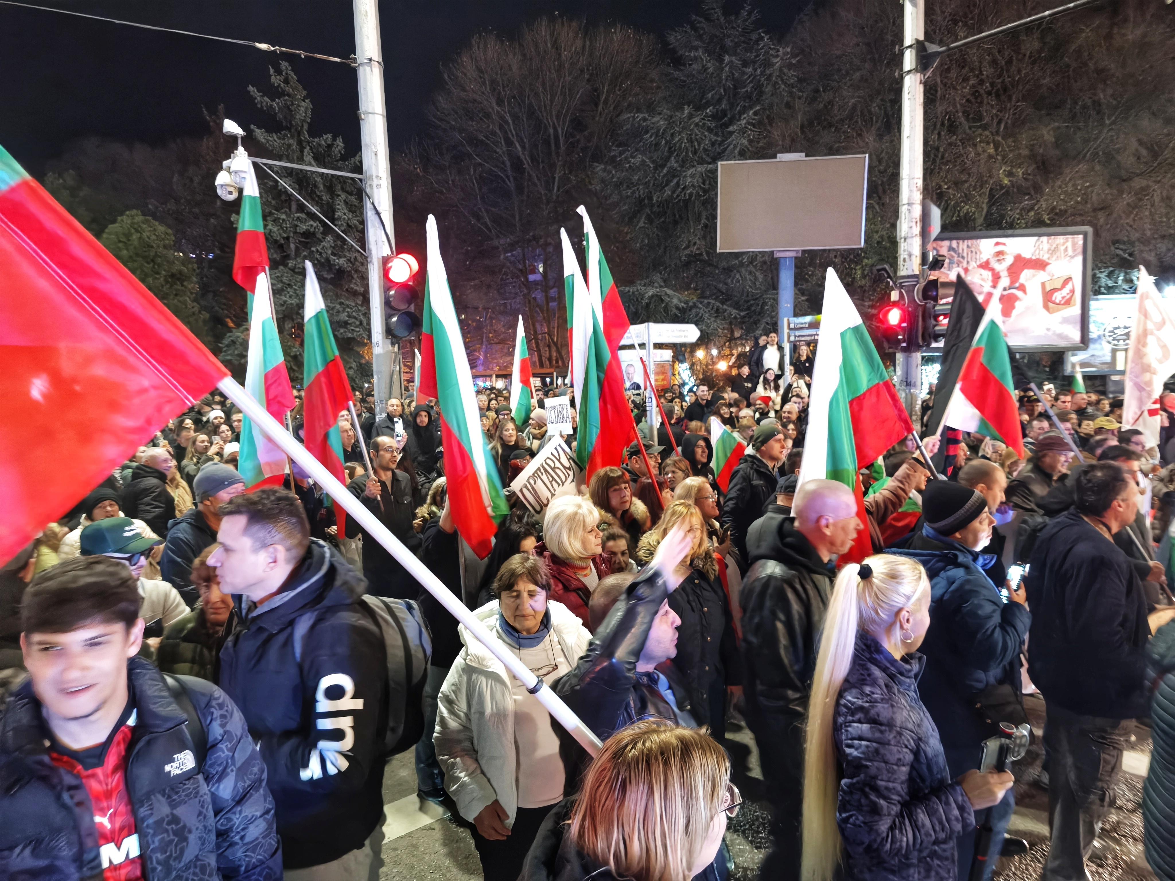 Блокирано бе едното платно. Протестиращите скандират "Оставка", "Мутрите вън". Носят знамена, запалиха светлинни и димни факли, предава Радио Варна.