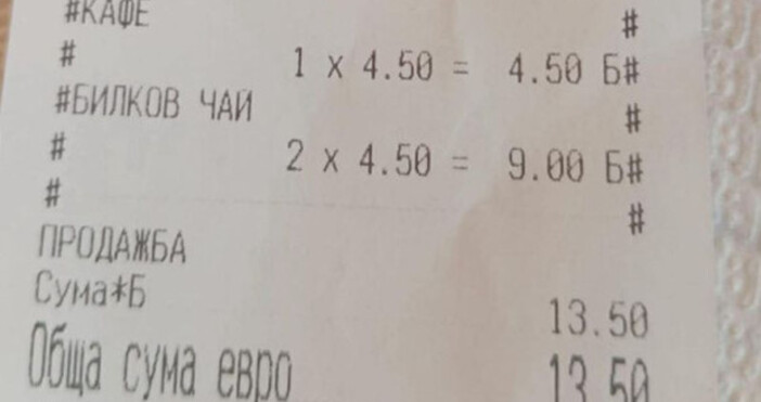 Жена разкри, че нейни приятели са платили 13,50 евро (26,40 лв) само за два чая и едно кафе. Тя сравни цените с топ курорти от Европа, като се оказва, че тук определено е доста по-скъпо, предаде Пловдив 24