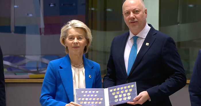 България е готова да бъде активен и отговорен партньор в рамките на паричния съюз на ЕС. Приемането на еврото е резултат от последователни усилия и реформи и ще допринесе за икономическа стабилност, по-голямо доверие и нови възможности за българските граждани и бизнеса. Това заяви министър-председателят Росен Желязков, който подари серията български евромонети на председателя на European Commission Урсула фон дер Лайен преди началото на заседанието на Европейския съвет в Брюксел.