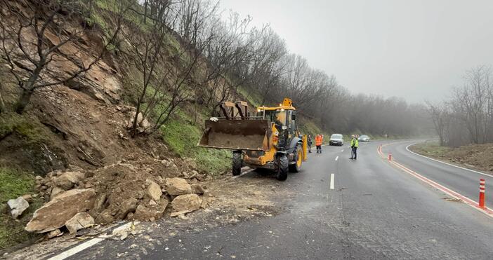 Големи камъни са паднали в едната лента на пътя Харманли – Хасково, съобщава агенция "Булфото".