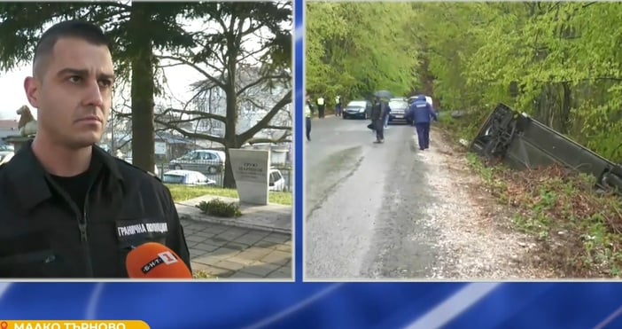 "Около 6.30 минути получихме сигнал от оперативната част, че автобус е спрял на пътното платно с голяма предпоставка за ПТП. Отреагирах веднага и тръгнах за ГКПП-то със служебния автомобил. Автобусът беше спрял перперникулярно на пътното платно, включих светлинните сигнали на автомобила, спрях на завоя с цел да обезпеча движението, да не стане ПТП.", разказа в ефира на БНТ Ивелин Арабаджиев, граничен полицай на ГКПП "Малко Търново".