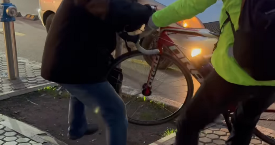 Шофьор спря на велоалея и задърпа колелото на велосипедист