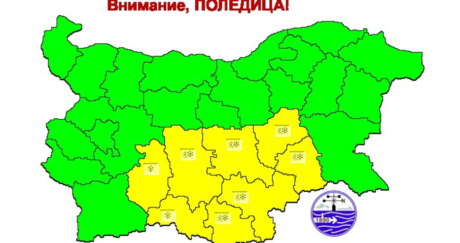 НИМХ издаде жълт код за валежи и поледици в 8 области