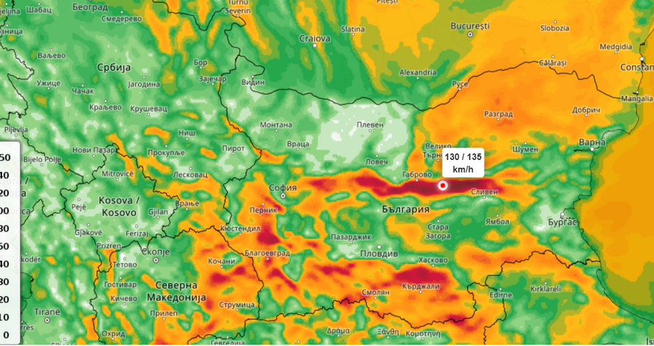 Метео Балканс: Задават се ветрове с пориви до 100-110 км/час в планините