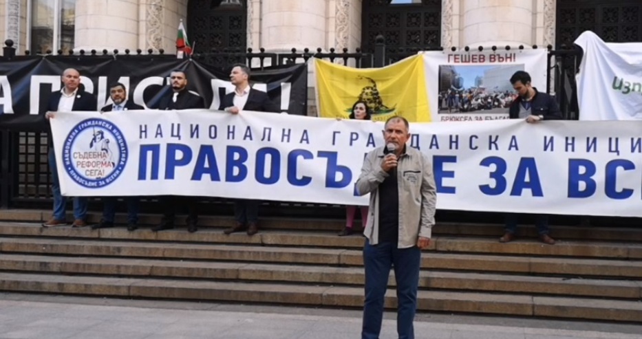 Протестиращи очакват Кьовеши с плакати против Гешев