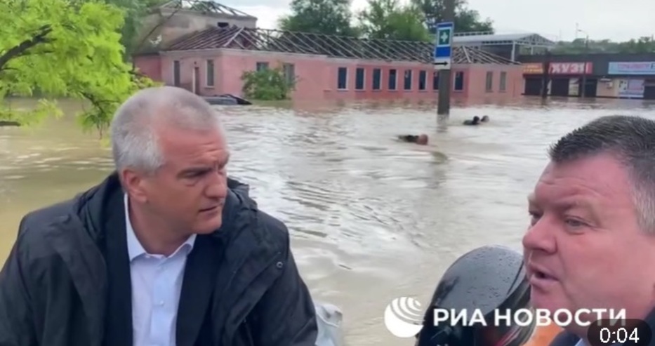 Чиновници от Министерството на извънредните ситуации плуват зад лодката на лидера на Крим