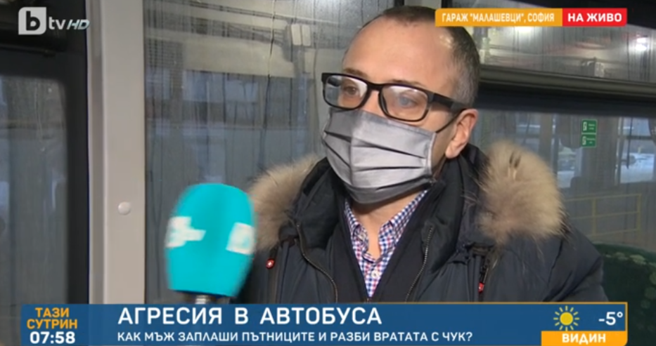Агресивен пътник вилня в столичен автобус с чук, изпотроши го целия пред очите на пътниците