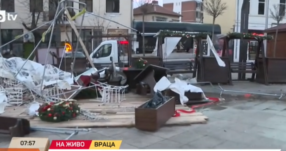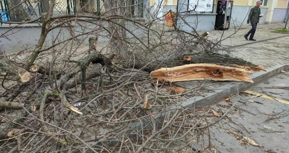 Паднали спирки и стълбове след ураганния вятър днес във Враца