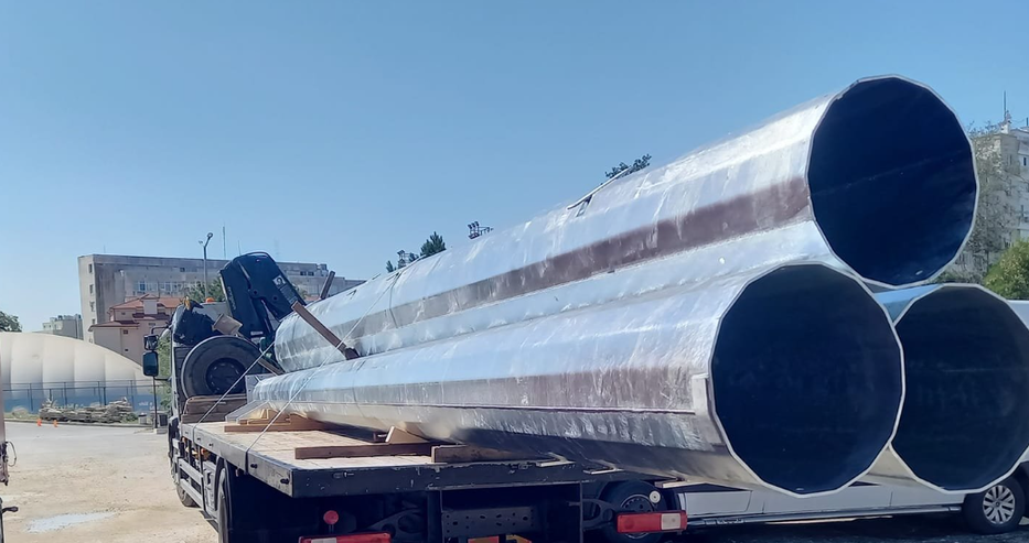 Разтовариха пилоните за осветлението на стадион "Спартак"