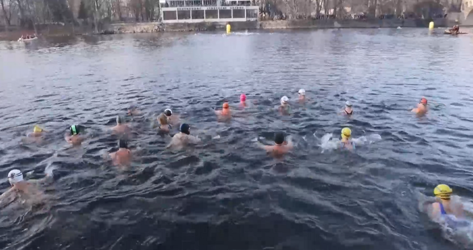 Стотици скочиха в ледените води на река Вълтава в Прага