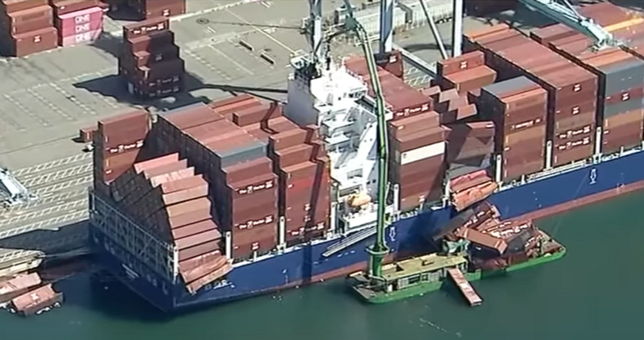 Десетки контейнери паднаха от товарен кораб в пристанището на Лонг Бийч