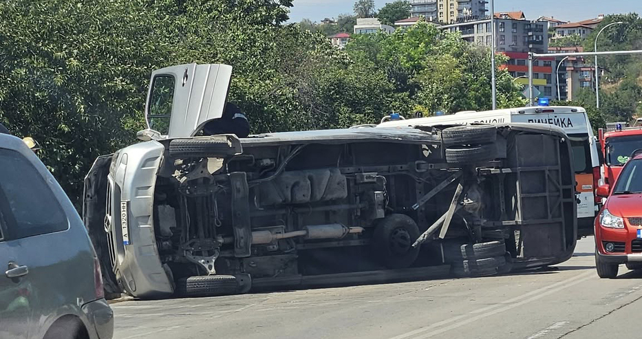 Микробус се преобърна след сблъсък с автомобил във Варна, има пострадали